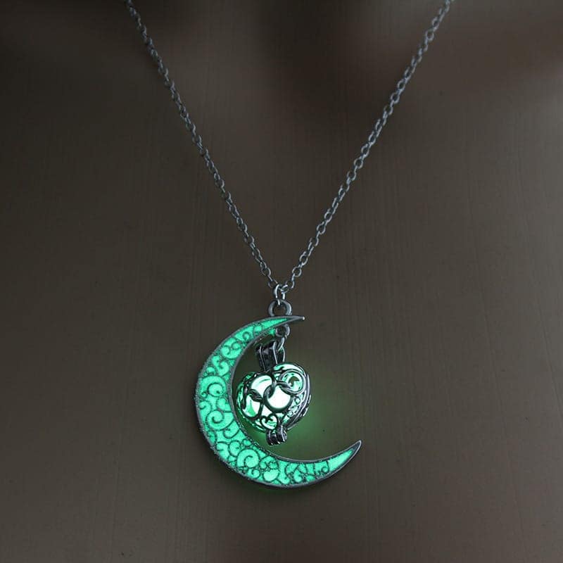 A stylish glowing pendant necklace with a silver-plated chain that softly shines in the dark for an elegant, eye-catching look.
